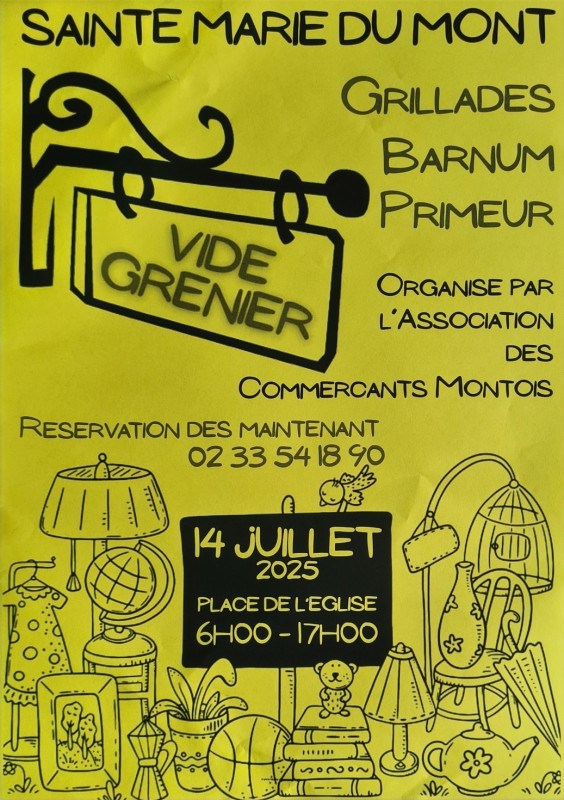 L'association tiendra un stand lors du vide greniers du 14 juillet 2025 sur la place de l'église de Sainte-Marie-du-Mont organisé par l'association des commerçants.